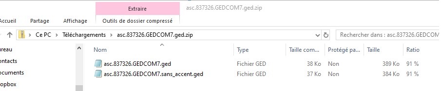 Le fichier d'ascendance existe en 2 versions. Une version UTF8 avec des accents et une version ASCII sans accent.